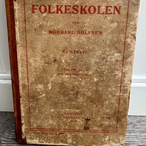 Læsebog for Folkeskolen ved Nordahl Rolfsen. Med tegninger af norske kunstnere. Tredje del. skriftsprog og landsmaal. Kristiania. Jacob Dybwads forlag 1897. 240 sider. Originalt kartongbind med skinnrygg.