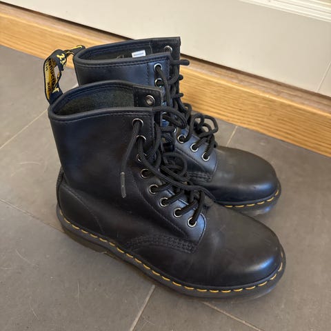 Nesten ubrukte martens støvler i svart skinn. Kun brukt ca 10 ganger. De var dessverre for store i størrelsen.