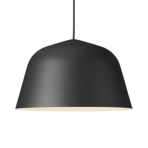 Vurderer å selge en sort designlampe fra Muuto i håndspunnet aluminium.