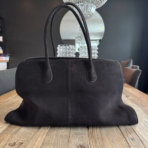 Nydelig veske i 100% ekte semsket skinn fra NAKD. Ny pris 1400k/selges på Nakd for øyeblikket. Kun prøvd på hjemme for å se hvor mye den rommer.