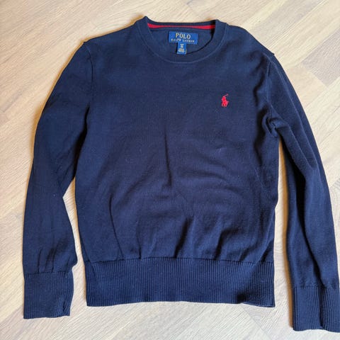 Litt mørkere blå i virkeligheten. Nydelig genser i bomull. Pent brukt. Str 5 år, men Litt liten i størrelsen.