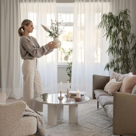 Hvit kid gardinskinne. Pakken inneholder gardinskinne med glidere og tilbehør for oppheng av gardiner.