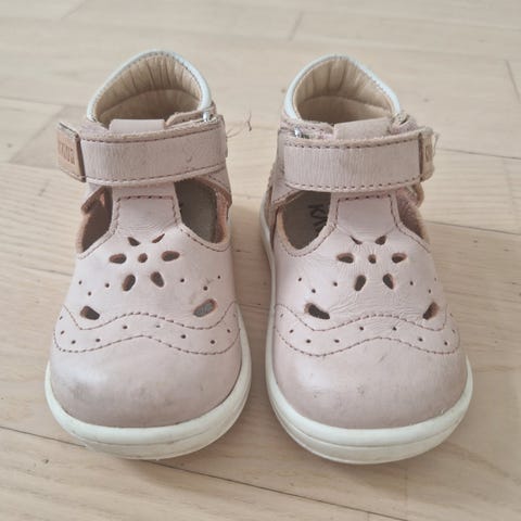 Skoene har lukket tå med utskjærte detaljer og borrelåslukking over vristen for justerbar passform.