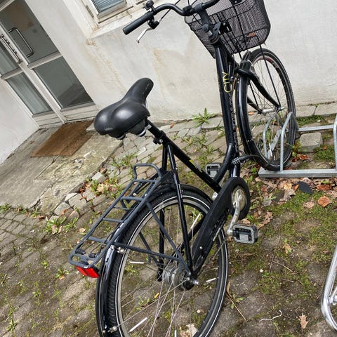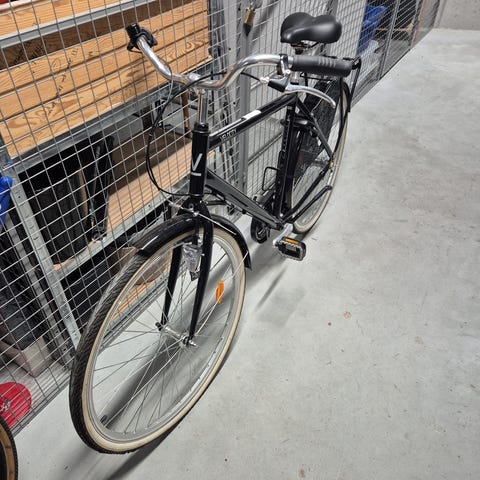 Sykkel selges med eller uten sykkelsete til barn. Typisk bysykkel. Tung, 7 gir. Sykkel og sete er fra biltema. Setet er fra i fjor. Kun brukt et par ganger. Sykkelen er eldre utgave. Dekkene trenger litt ekstra stell, enten nye slanger i begge dekk eller så må begge dekkene byttes ut. Ene dekket mangler luftpropp.