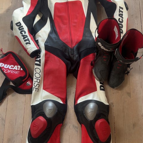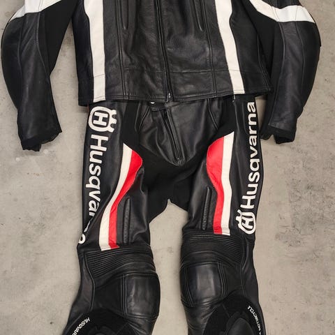 – Todelt skinndress med jakke og bukse som glidelåses sammen