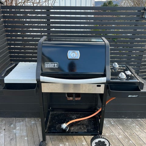 Selger vår Weber gassgrill med tre brennere, hvilehylle og Weber-trekk. Grillen fungerer utmerket og har helt ny gassslange /ventilator.