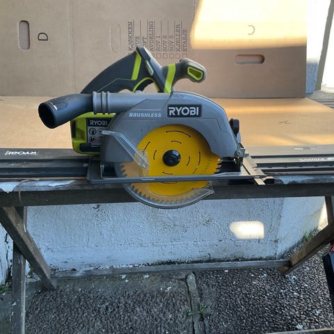 Ryobi bord- og kapp-/gjærsag med 1800W motor og 254 mm sagblad.