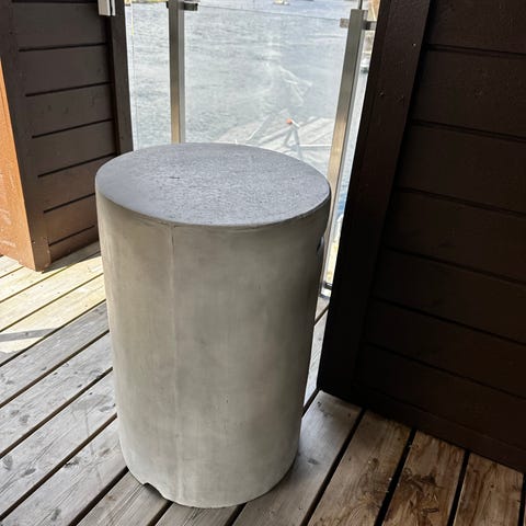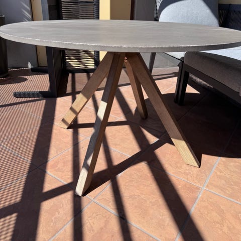 Rundt bord, smuldrer noe bort på kantene. Sikkert mulig og gjøre noe med for noen som kan dette. 90 cm diameter. 74 cm høyt. Pris kan diskuteres