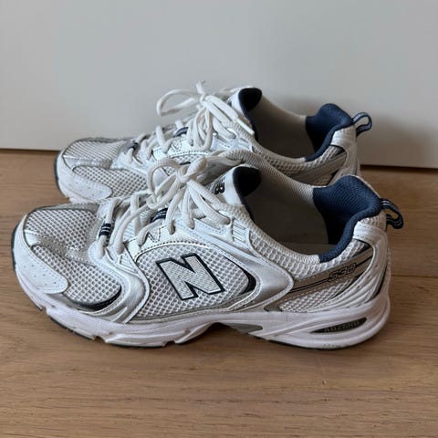 Selger et par New Balance 530 (MR530CE) i lys krem/hvit/seasalt farge. Kun prøvd på inne. Komfortable og populære sneakers med klassisk retro-look.