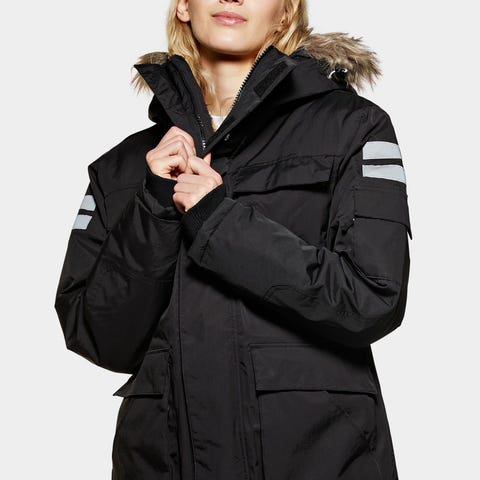 Russeservice ytterjakke for dame i størrelse S. Den har hette med fuskepelskant og flere utvendige lommer. Refleksdetaljer på ermer og rygg gir økt synlighet. Passer som varm ytterjakke i hverdagen og til utendørs bruk i kjølig vær.