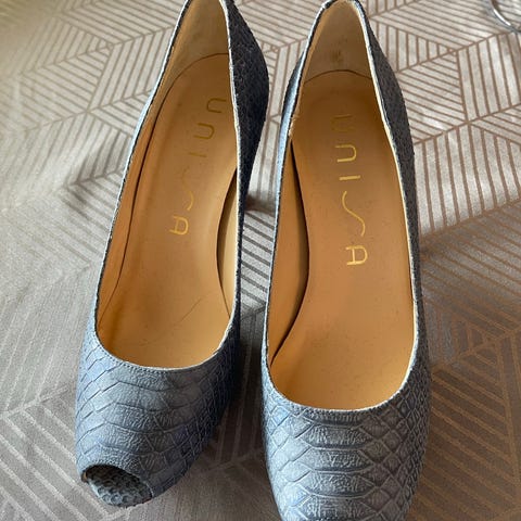 Sko i skinn med hel i 38. Merke er Unisa. Åpen foran.