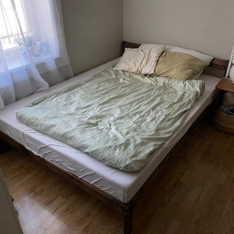 IKEA TARVA dobbeltseng med treramme. Sengen har en enkel, rettlinjet ramme i treverk og er beregnet for to personer. Passer til standard dobbel madrass. Egnet for bruk på soverom som fast sengeløsning.