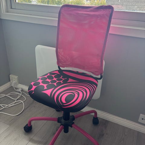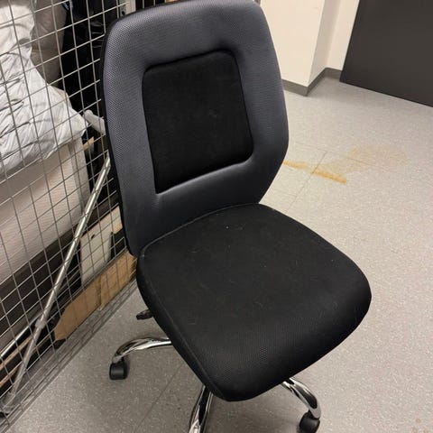 Ikea kontorstol, litt skittent, men helt funksjonelt.