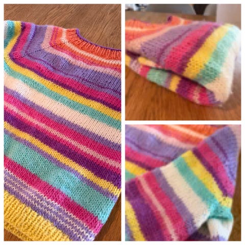 Strikkegenser i alpakka fra huttelihut. Strikket i Bolivia. Genseren har nupper pga materialet, men det er bare å plukke vekk etter hvert. Jeg mener størrelsen er 6-8år, men denne kan brukes tidligere- fra 4-5 for en oversize look, så den genseren har lang brukstid. Deilig og myk genser!