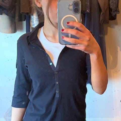 Sort topp med åpning på begge skuldre, glidelås i siden str m ny pris 1800