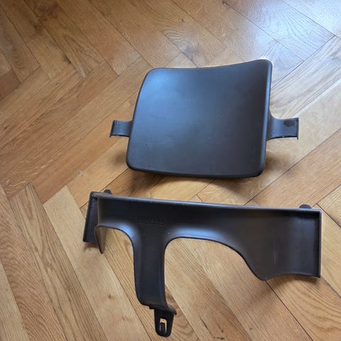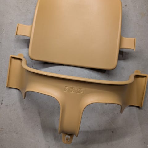Settet består av ryggstøtte, frontbøyle med integrert støtte mellom bena, avtagbart spisebrett, 5-punkts sele med justerbare stropper og to festebraketter. Tilbehøret er laget for bruk sammen med Stokke Tripp Trapp barnestol.