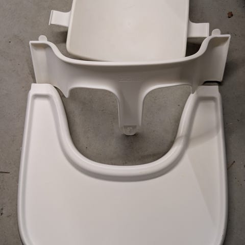 Stokke Tripp Trapp babysett med bøyle, brett og sele.