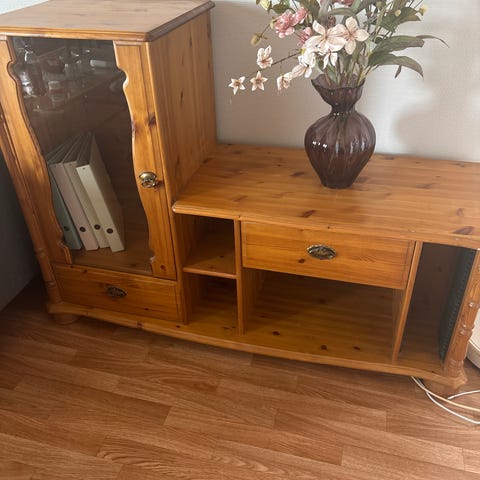 2 skjenker i heltre med kurvhyller gis bort gratis mot henting pga flytting. En del bruksmerker, men mye bruk igjen. (Den er ikke fra IKEA, men får ikke fjernet det.)