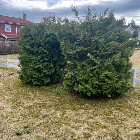 To stykk Tuja busker gis bort mot henting. En forutsetning er at grusen dras bort der det graves, og legges tilbake etterpå.