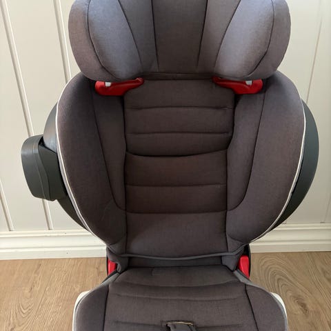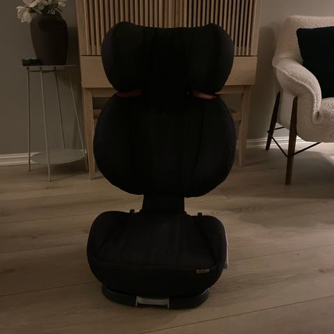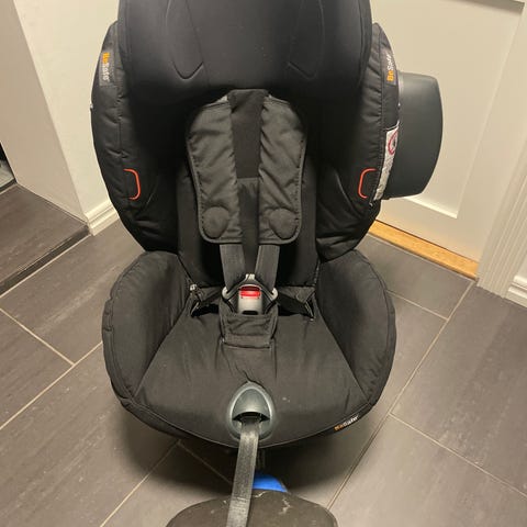 Den har støtteben for ekstra stabilitet. Trekket er polstret og kan tas av og vaskes. Festes med isofix mot kjøreretningen.