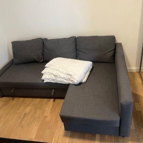 Kan brukes som sovesofa – enkel å slå ut.