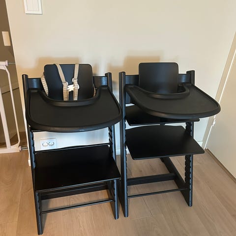 RESERVERTE - To Stokke tripp trapp stole selges med ryggstøtte og bøyle