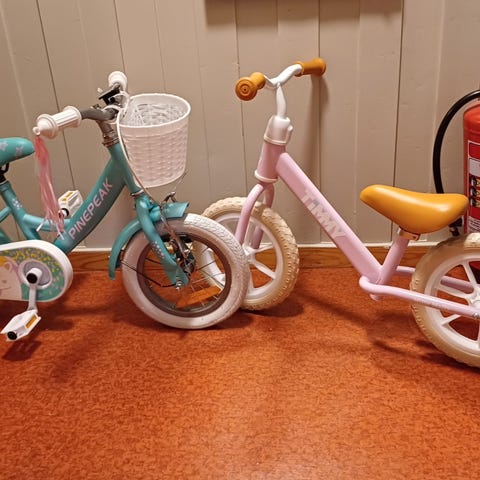 Barnesykkel 12" med støttehjul og sparkesykkel. + ⛑️