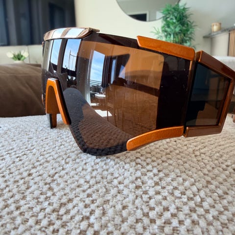 Pit Viper original Miami Nights solbriller med hvit ramme og stort, sammenhengende speilglass i rosa fargetone. Modellen har rette stenger og justerbar nesebøyle for bedre passform. Egnet som sports- og fritidsbriller, for eksempel til sykling, løping eller annen utendørs aktivitet der man ønsker skjerming mot sollys og vind.