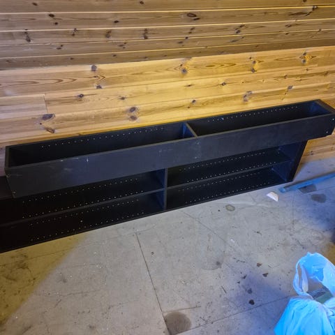 Hyller, speil, skrivepult, akematter