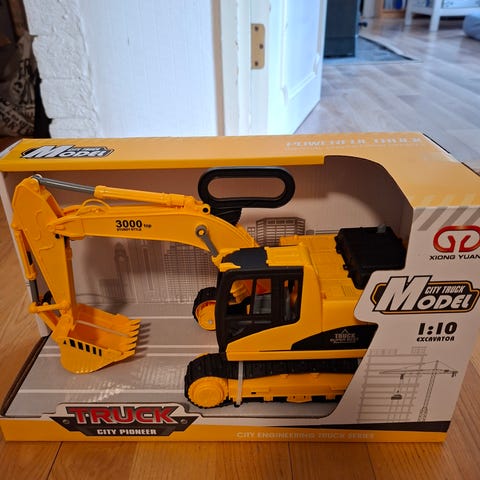 Selger en batteridrevet gravemaskin som går med fjernkontroll.