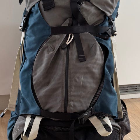 Dette er en genial turvenn - bag og ryggsekk i ett. I tillegg en liten sekk som glides fast i den store. Noen år gammel, lite brukt og super kvalitet. 85 liter er den store sekken.