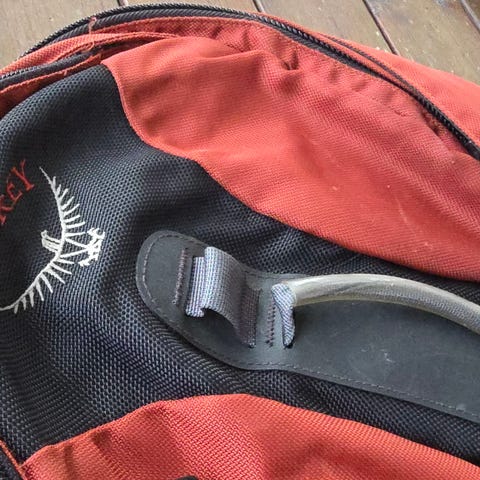 Osprey reisesekk med avtakbar dagstursekk i brun og grå farge.