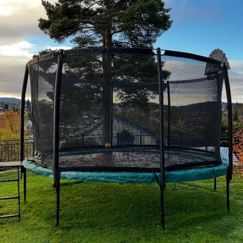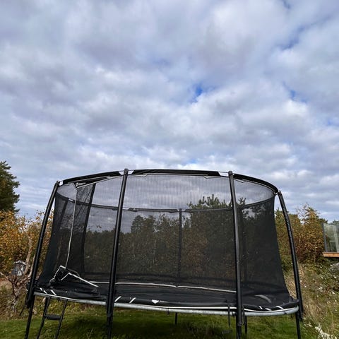 Trampolinen av ukjent årstall men jeg tipper rundt 5-7 år gammel.