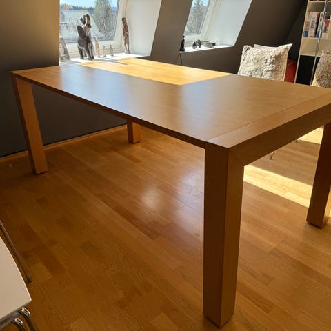 Pent brukt spisebord fra IKEA, modell mörbylånga/morbylånga. Bordet er i brunbeiset eikefiner. Måler 140 cm x 85 cm. Fargen er likende valnøtt/mørk trefarge. Bordet egner seg godt som spisebord i spisestue eller som kjøkkenbord. Et par bitte små bruksmerker (se bilder), som ikke synes på avstand eller ved vanlig bruk, ellers er bordet veldig fint. Dagens pris på IKEA er 5995 kroner. Se link for mer info: https://www.ikea.com/no/no/p/moerbylanga-bord-eikefiner-brunbeiset-50386245/?utm_source=google&utm_medium=cpc&utm_campaign=21834881410&utm_content=shopping&gclsrc=aw.ds&gad_source=1&gad_campaignid=21834881410&gbraid=0AAAAAD-R4YNq7OB8nTBYJdB3ccYdqr5eg&gclid=CjwKCAjw-J3OBhBuEiwAwqZ_h02rcMnMC2_6zEJrFoAzmIXBne0v90E6SULR-UiTpDkTMvsalcjhZxoCEH4QAvD_BwE