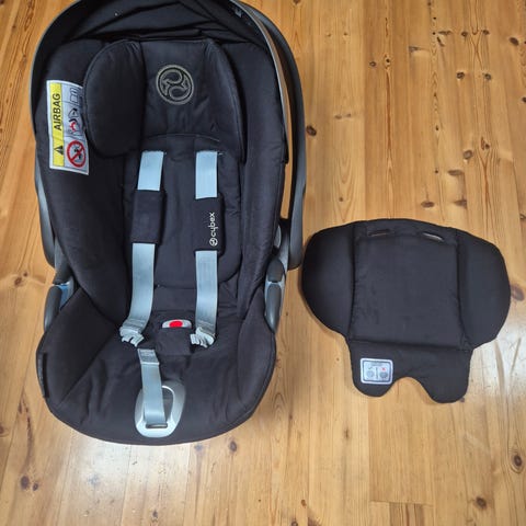 Cybex bilsete til baby i vektklasse 0+ opp til 13 kg. Setet har mykt polstret sete med justerbar internsele og hodestøtte for spedbarn. Trekk i grå tekstil.