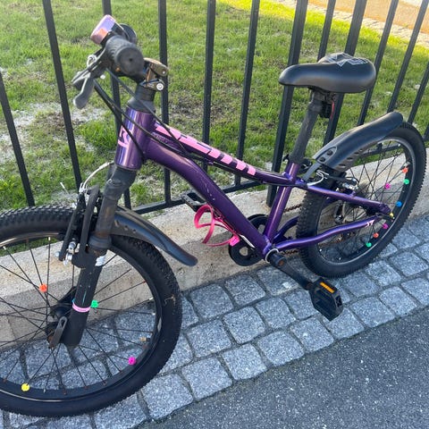 Tøff, solid sykkel til barn i aldersgruppen 5–8 år. Aluminiumsramme, dempegaffel, V-bremser og 6 Shimano-gir. Skjermer medfølger. Vekt: 12 kg.