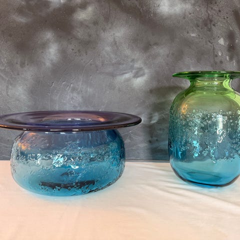 Kosta Boda Kjell Engmann Twister Pedestal Art Glass Bowl Purple Orange Blue i glass