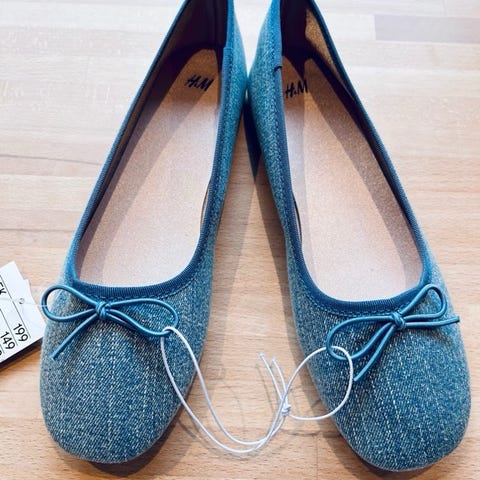H&M ballerinasko for jente i størrelse 36-37. Skoene er i gullfarge med skinnende overflate og preget mønster. Myk og fleksibel overdel med gummisåle under. Leveres med pose for oppbevaring/transport, slik som vist på bildene. Egnet som lette hverdagssko eller til penere anledninger.