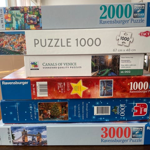 Pakke med flere puslespill fra Ravensburger og Trefl. Inneholder hovedsakelig puslespill med 1000 brikker, samt ett puslespill med 500 brikker.