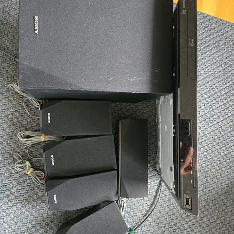 Systemet er egnet for tilkobling til TV for avspilling av film og musikk med omgivelseslyd. Leveres med nødvendige kabler for tilkobling mellom spiller og høyttalere, samt strømtilkobling.