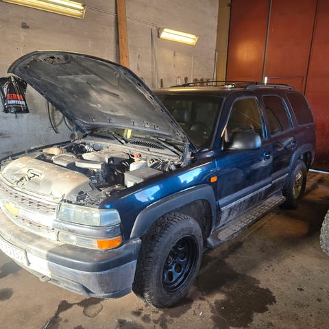 Sete er solgt. Har 4 stk felger med slitne vinterdekk, 3-4 mm igjen. Disse har stått på en Chevrolet tahoe 2001 mod, kom med bud.