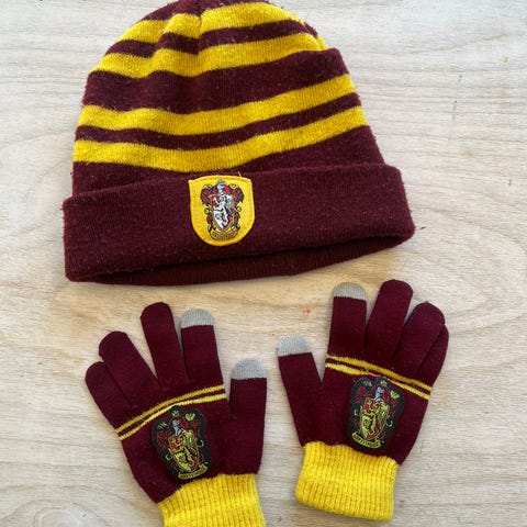 Ubrukt Harry Potter Gryffindor sett med skjerf, lue og votter selges. Kun prøvd på og lagt I en skuff. Str. 4-8 år. Kjøpt på Outland