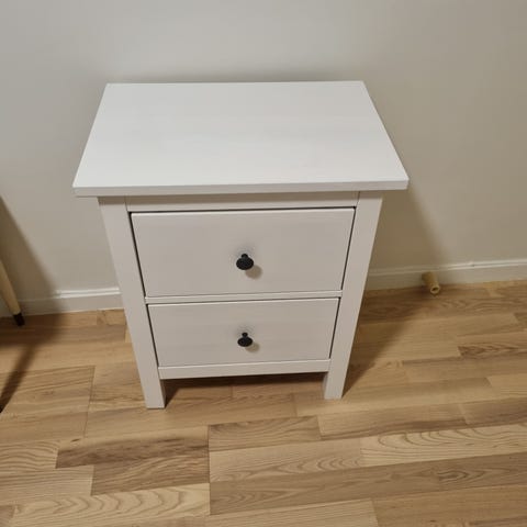 Nattbord til salgs grunnet flytting. Et par bruksmerker (se bilde), men ellers helt og pent. Passer perfekt til Ikea Koppang kommode, men usikker på hvilken modell nattbordet er.