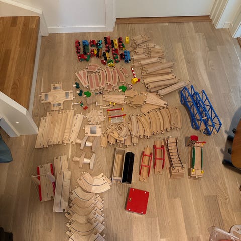 Masse togbaner og utstyr fra Brio selges.