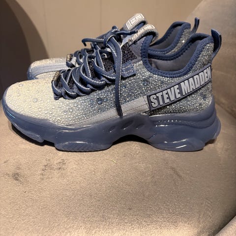 Steve Madden sneakers i størrelse 40, men jeg bruker 38.Stillig og komfortabel. Modellen er i en beige farge med pustende strikket overdel og snøring foran.
