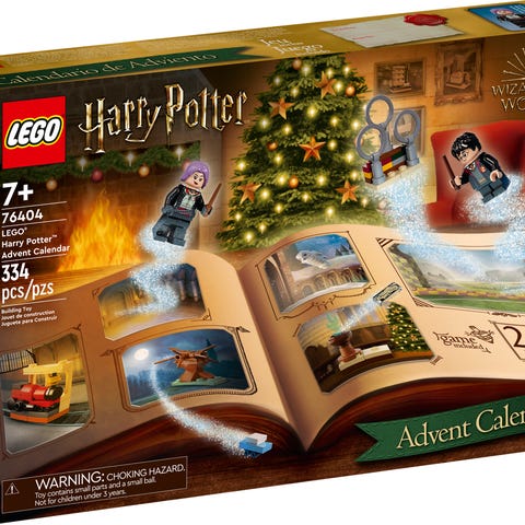 LEGO 75964 Harry Potter adventskalender byggesett. Settet inneholder flere små byggesett og minifigurer inspirert av Harry Potter-universet, som blant annet kjente karakterer, juletre, peis, bord og ulike tilbehørsdeler.