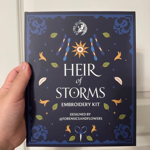 Heir of Storms broderisett. Pakken inneholder et komplett broderikit med motiv inspirert av Heir of Storms av Lauryn Hamilton Murray. Designet av @forensicsandflowers.