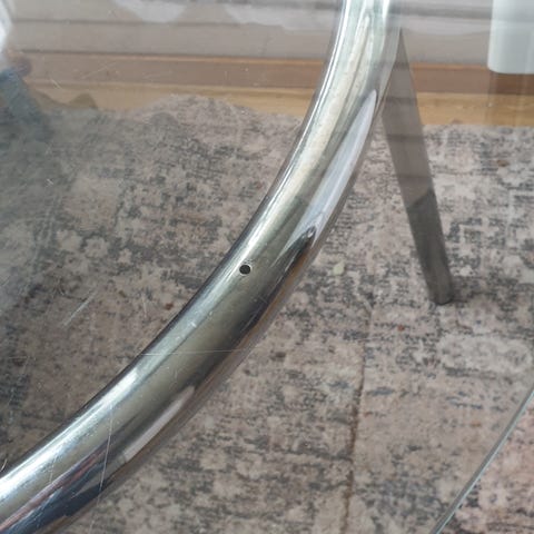 Pent brukt og tar lite plass ø 90 i diamanter. Bordet kan sikkert btukes ute også.