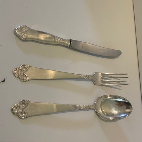 Sølvplett bestikk. Gaffel 60gr, skje 40 gr, . Samlet kr 300. .