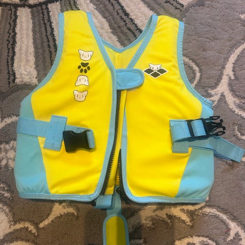 Bema Original svømmevest med armbånd i oransje farge for barn. Produktet består av en flyteelement rundt brystet kombinert med integrerte armringer. Yttermateriale er polyester med fyll av EPE-skum. Godkjent etter CE EN 13138-1:2014, klasse B. Egnet som svømmehjelp for barn innenfor angitt vektområde på produktet, og skal alltid brukes under tilsyn av voksen.